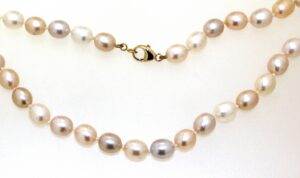 Collier 73 perles de culture en chute. 8.5 – 5mm, longueur : 49cm
