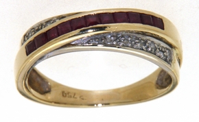 Bague OR 750 Bicolore Rubis calibrés et diamants. Doigt 53