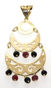 Pendentif OR 750 Saphirs et Rubis. 2 demi Lunes.