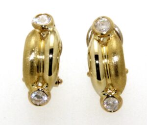 Boucles d’oreilles OR 750 Clips / tiges mat & brillant, Oxydes de Zirconium.