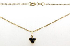 Collier OR 750 jaune motif 3 saphirs navette, maille corde 1.2mm – longueur 43cm