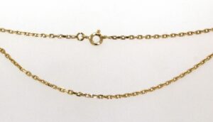 Collier OR 750 jaune maille Gourmette Anglaise en chute, largeur 11.5mm – 7.5mm. Longueur 42.5cm.