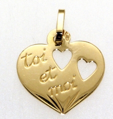 Pendentif OR 750 jaune Coeur « Toi et Moi » 16mm