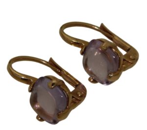 Boucles d’Oreilles OR 750 Rose dormeuses Améthystes cabochon.
