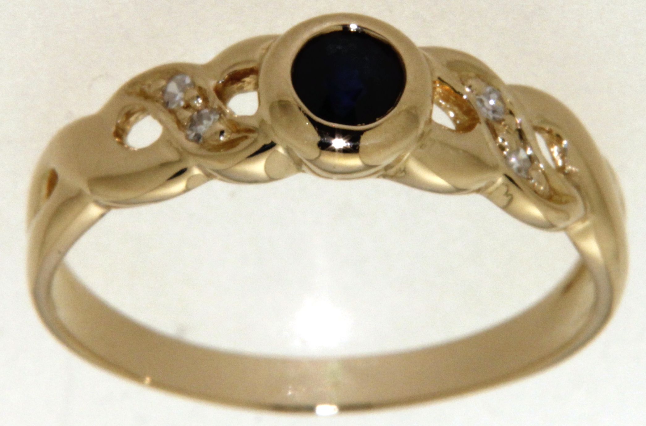 Bague OR 7540 jaune Saphir rond serti clos environ 0.30ct + 4 diamants taille simplifiée environ 0.04ct. Doigt 53