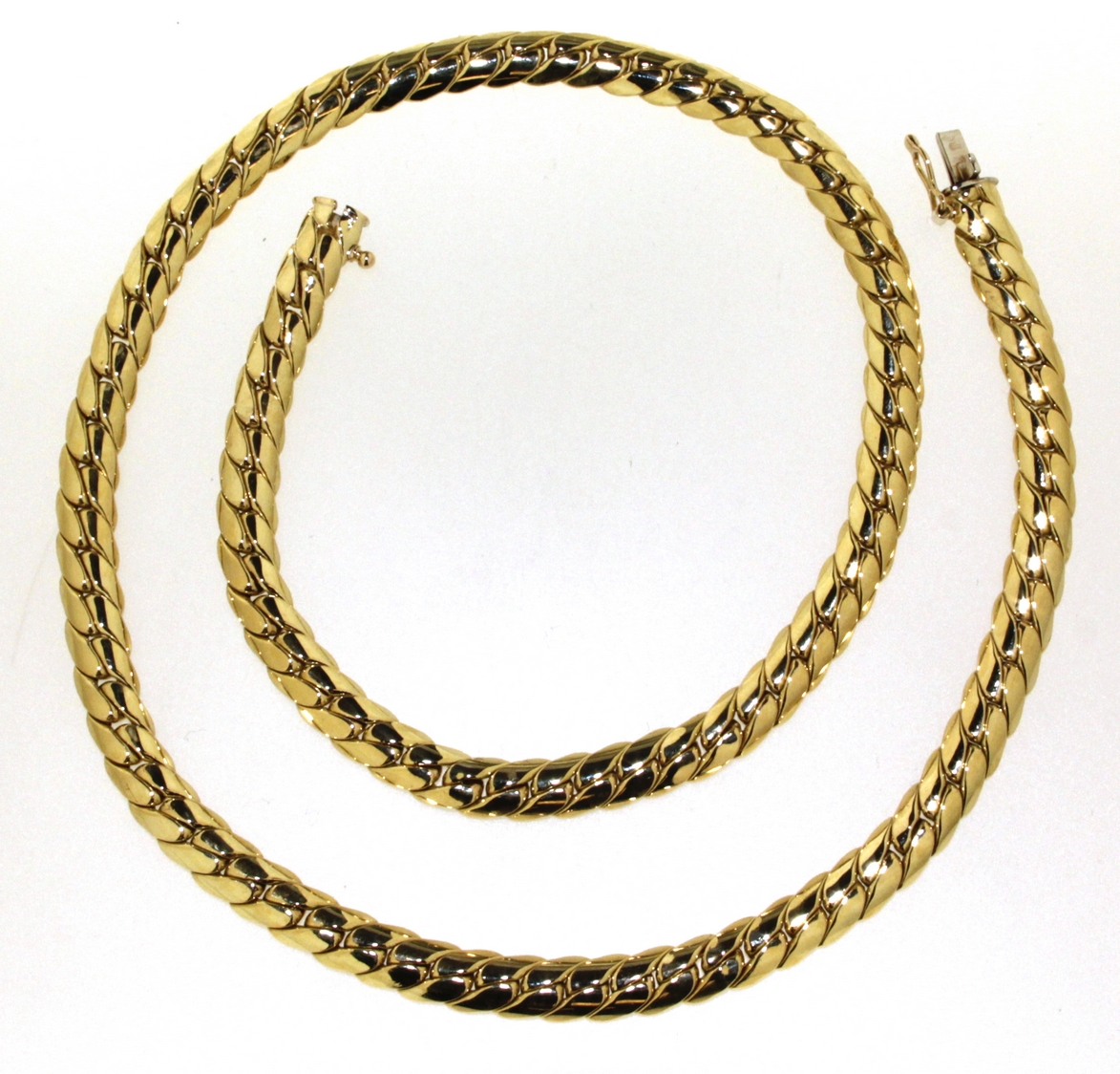 Collier OR 750 jaune maille Gourmette demi bombée largeur 5.5mm longueur: 42cm.